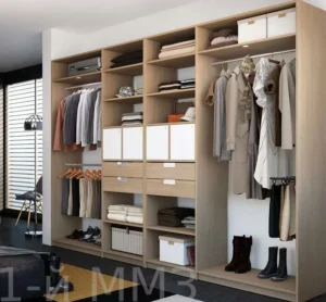 2. تصميم مدمج: دمج الملابس مع غرفة النوم لمساحة أكبر.